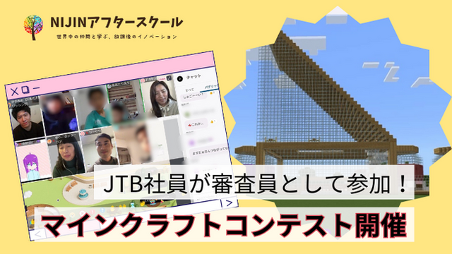 株式会社NIJIN(本社:東京都江東区、代表取締役:星野達郎)が運営する小中学生を対象としたメタバース学童『NIJINアフタースクール』は、11/30(土)にJTB社員を審査員に迎え、マインクラフトコンテストを開催いたしました。