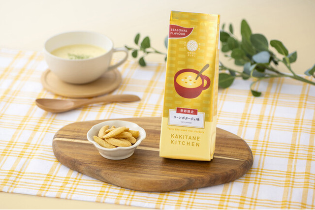 『かきたね コーンポタージュ味』は、寒い季節にほっこりと温かい気持ちをお届けいたします。