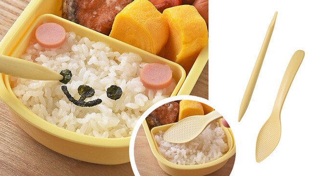 お弁当箱のスミや、デコ弁グッズのおにぎり型の細かいところまでご飯を詰めることも、意外と面倒な作業です。 とは言え、スプーンで詰めようとするとくっついてしまって、洗うのが大変になったり。 でも「ミニしゃもじ」を使えばそんなイライラもありません!