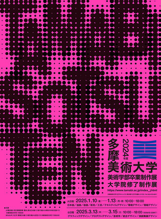 多摩美術大学(所在地:東京都世田谷区、八王子市、学長:内藤廣)は、2025年1月と3月に「2024年度卒業制作・大学院修了制作展」の学内展を開催します。期間中は、学部卒業生および大学院修了生たちの作品が八王子キャンパス内に一堂に展示されます。いずれも入場無料、事前予約は不要です。若き作家・アーティストたちの大学生活/大学院生活の集大成となる渾身の作品をぜひ会場でご覧ください。