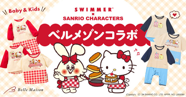 株式会社千趣会(本社:大阪市 代表取締役社長:梶原健司 以下千趣会)の通販事業ベルメゾンは、動物やスイーツなどをモチーフにしたグッズを展開する雑貨ブランド「SWIMMER(以下、スイマー)」と株式会社サンリオの人気キャラクターたち「サンリオキャラクターズ」がコラボレーションした「SWIMMER×SANRIO CHARACTERS」のTシャツ、ロンパースなど、ベルメゾンオリジナルのべビー・キッズウェア3点を、12月20日(金)よりベルメゾンネットにて販売開始します。(https://www.bellemaison.jp/ )