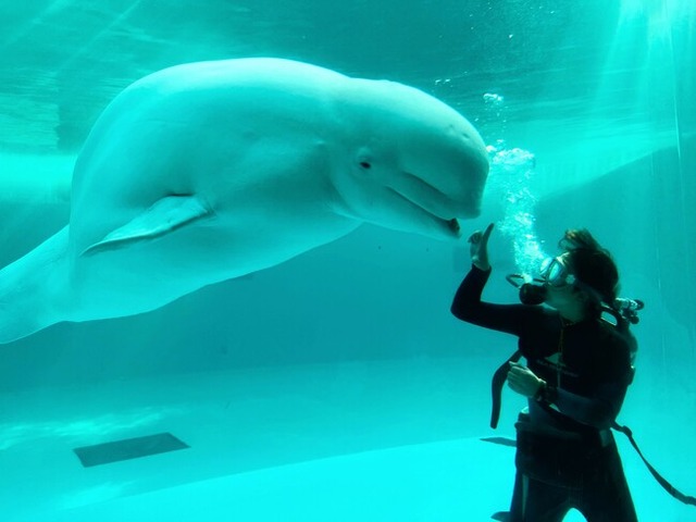シロイルカの水中パフォーマンス