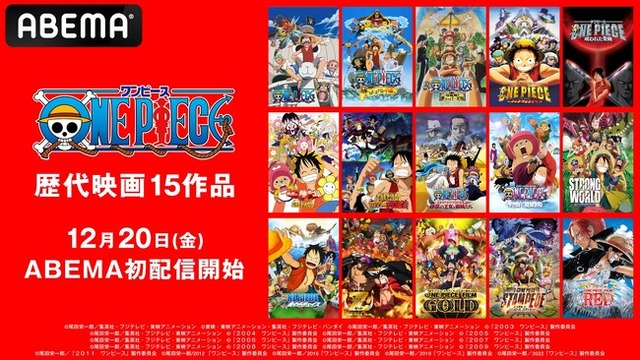 新しい未来のテレビ「ABEMA」は、大人気アニメ『ONE PIECE』の歴代映画15作品を、2024年12月20日(金)より初配信いたします。