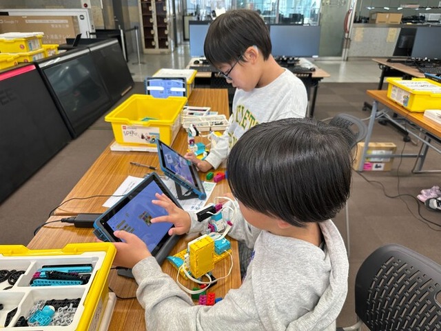 大人気LEGOを使用したプログラミングを体験。今回は「品質検査ロボット」を作ってプログラミングを体験しました。参加者は日常生活においてロボットが身近な存在であり、それを支えるプログラミングの重要性を実感しながら学びを深めました。