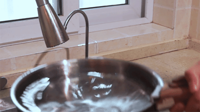 2.水を入れて水滴が転がる状態になるまで加熱する