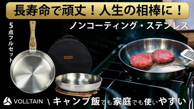 家でも外でもノンコーティング・ステンレス【VOLLTAINフライパン・鍋セット】