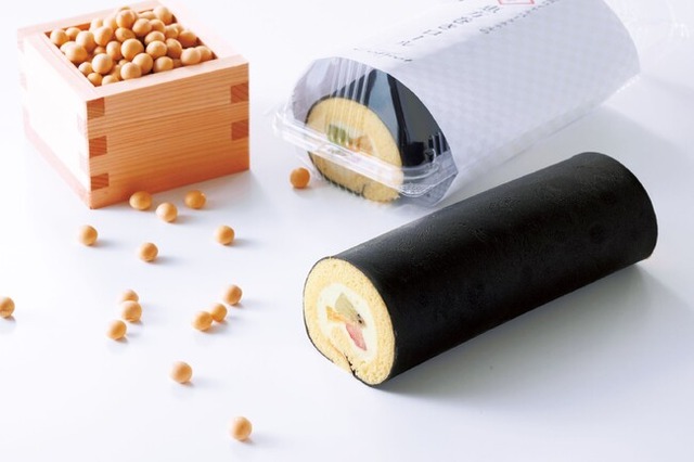 オレンジリキュールがほんのり香るホテルオリジナルクリームと、いちご・オレンジ・キウイをしっとりふわふわのスポンジで包み、ブラックココアのクレープ生地で海苔を表現した、見た目はまるで「恵方巻」なロールケーキです。フルーツの酸味と後味さっぱりのホテルオリジナルクリーム、ほろ苦いブラックココアのマリアージュをお楽しみいただけます。(サイズ:長さ約15cm)