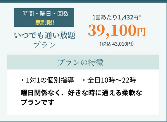 通い放題プラン定額制だから安心: 毎日通えて追加料金なし