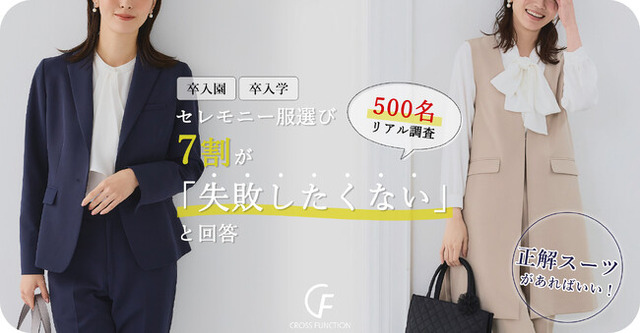 こだわりの素材と生産ノウハウを活かした人気機能商品だけを揃えた『CROSS FUNCTION』は、卒入園・卒入学にまつわる実態調査を500名に実施いたしました。卒入園・卒入学に着たセレモニー服の選び方や機能性など、調査の結果を先輩ママの声とともにお知らせいたします。