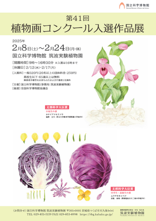 入選作品展を筑波実験植物園にて令和7年2月8日(土)から2月24日(月・休)、上野本館にて令和7年7月1日(火)から7月21日(月・休)、附属自然教育園にて8月2日(土)から9月15日(月・休)に行う予定です。