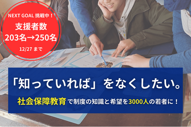 開始からわずか数週間で203名からの支援が集まったのは、「若者にこそ、制度の知識という“傘”を届けたい」という想いに、多くの方が共感してくださったからだと考えています。
