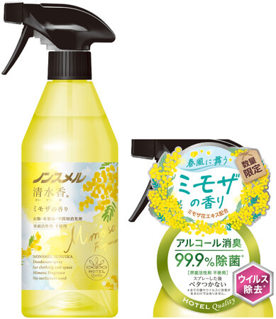 白元アース株式会社(本社:東京都足立区、社長:吉村一人)は、ホテルクオリティの衣類・布製品・空間用消臭剤「ノンスメル清水香(せいすいか)」より、春限定の『ミモザの香り』 を2025年1月10日より数量限定発売いたします。