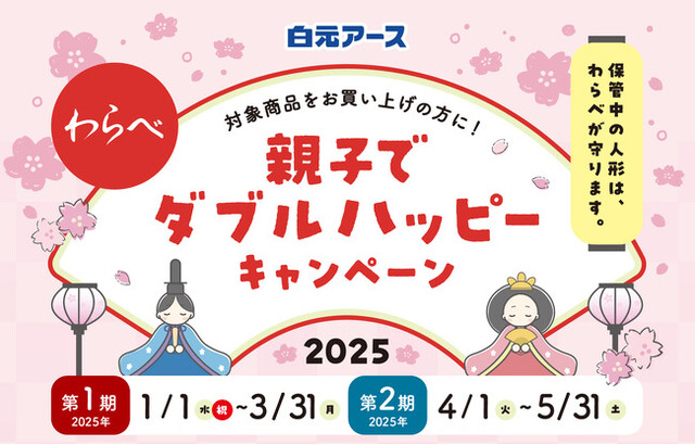 白元アース株式会社(本社:東京都足立区、社長:吉村一人)は、同社の人形用ケア商品「わらべ」シリーズを購入し応募いただくと、抽選で「JCBギフトカード10,000円分」や「マックカード(マクドナルド)5,000円分」が当たる『わらべ 親子でダブルハッピーキャンペーン2025』を2025年1月1日から実施いたします。