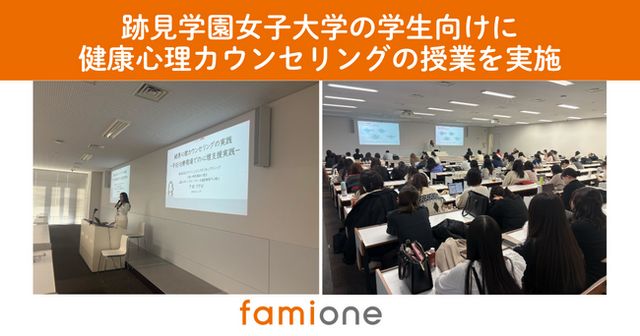 「子どもを願うすべての人によりそい 幸せな人生を歩める社会をつくる」をビジョンに掲げ、法人の従業員向け福利厚生や自治体の住民向け支援を行うヘルスケアサポートサービス「ファミワン」 https://famione.com/benefit/ などを展開する株式会社ファミワン(本社:東京都渋谷区、代表取締役:石川勇介)の公認心理師・臨床心理士の戸田が学校法人跡見学園(理事長:跡見 裕)の跡見学園女子大学の健康心理カウンセリングの授業に登壇しました。
