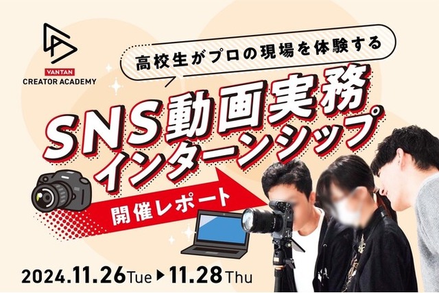 高校生の就職を支援している「ジンジブ」(大阪市)は、2024年11月26日~28日に、次世代動画メディアのプロを育成するバンタンクリエイターアカデミー 高等部(※提携するS高等学校で高卒資格を取得)に在籍する2年生に向けて、動画実務に関するインターンシップを開講いたしました。