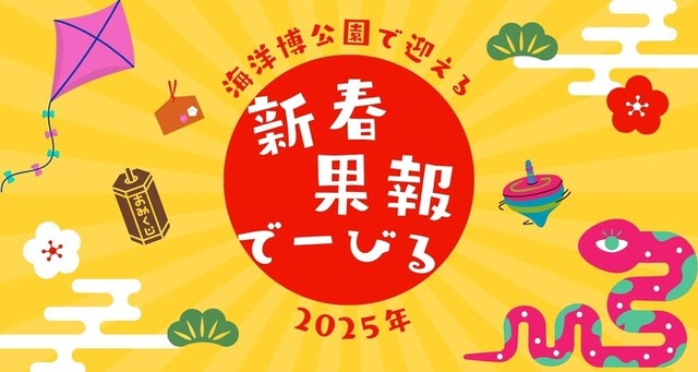 海洋博公園では、令和7年1月1日(水・祝)から13日(月・祝)の期間、新春イベントを開催します。沖縄の伝統的な草玩具のゆびハブを作る工作体験や、伝統芸能ステージでは琉球舞踊をご覧いただけます。さらには、大人気のダンボール迷路は「初詣」がテーマとなっています!ぜひ新年を海洋博公園でお迎えください。詳細はHPにてご確認ください。