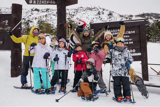 ロープウェイを使って八ヶ岳の山頂付近へ登り、スノーシューをつけて2km、2時間ほどの冬山コースのスノーシューハイキングにチャレンジします。ふかふかの雪の上をみんなで協力して歩き、真っ白に染まる山の幻想的な景色を見つけに行きます。