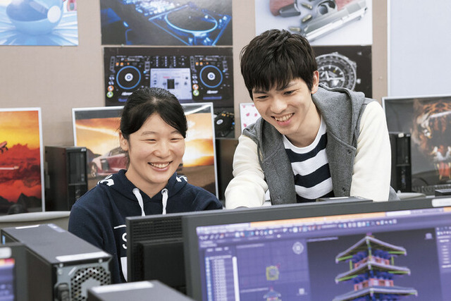 ASOポップカルチャー専門学校のCG分野では、CG業界で活躍できるグローバル・クリエイターを育成しています。業界標準の3DCGソフトを使い、経験豊富な講師から基礎から応用まで丁寧に学べるので、技術力はもちろん、観察力や表現力といったクリエイターに必要な力もしっかり身につきます。