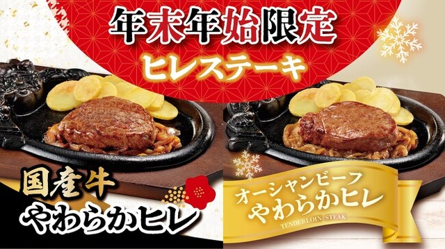 ステーキハウス ブロンコビリーでは、バイヤーが自信を持ってオススメする期間限定商品に大変ご好評いただいております。中でもお客様からのご要望が多く、非常に人気の高い「炭焼きやわらかヒレステーキ」を、ご家族やご友人が集まる年末年始に合わせ12月27日(金)より期間限定で提供いたします。