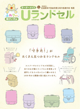 「小学生になったらランドセル!」という憧れや喜びを、たくさんのお子さまにお届けいたします。ユニバーサルランドセルを目指し「すべての子どもたちにランドセルを背負って通学してもらいたい」という思いをかたちにした「ふわりぃ障がい児用オーダーメイドUランドセル」は2000年に発売し、今年もご注文を受付中です。