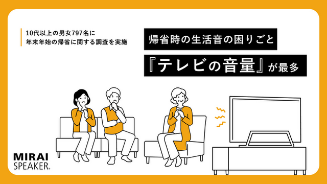 「100年のスピーカーの歴史」に聞こえにくさの解消という新しい視点を提示し、特許技術「曲面サウンド」をもってサウンド領域に新たな価値と可能性を提供する株式会社サウンドファン(所在地:東京都中央区、代表取締役社長:山地浩、以下:サウンドファン、以下「当社」)は、10代以上の男女797名に、今年の年末年始の帰省に関する調査を実施し、その結果を発表いたします。