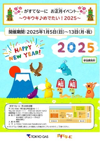 東京ガスの企業館「がすてなーに ガスの科学館」では、1月5日(日)~1月13日(月・祝)の期間で「お正月イベント~ウキウキ♪めでたい!2025~」を開催します。