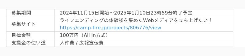※クラウドファンディングに込めた想いについては、2024年11月15日に投稿したプレスリリース『【ライフエンディングの知見を社会インフラへ】29歳起業家僧侶、終活メディア立ち上げを目指してクラウドファンディングに挑戦!』をご参照ください。