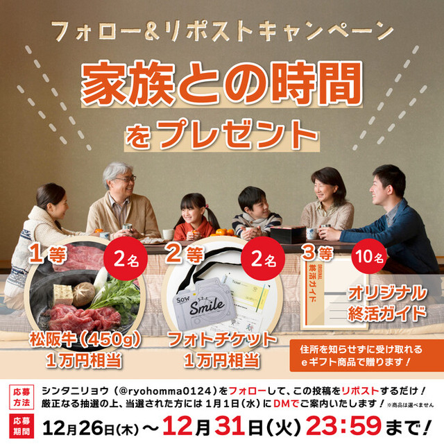 2024年12月26日、Waterhuman株式会社(本社:東京都文京区、代表取締役:新谷亮)は、X(旧Twitter)にて「フォロー&リポストで『家族との時間をプレゼント』キャペーン」を開始しました。あわせて同社が実施しているクラウドファンディングは目標達成率70%を突破。もしもの時に後悔をしないために、この年末年始を「想いを伝える時間」にしませんか?