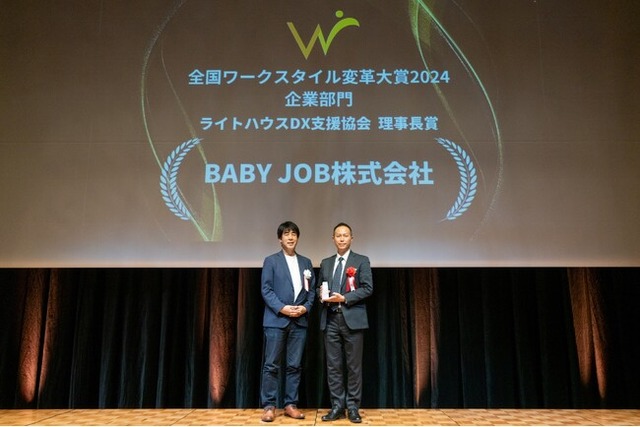 保育施設向け紙おむつとおしりふきのサブスク「手ぶら登園」や保育施設探しポータルサイト「えんさがそっ♪」など、子育て支援サービスを運営するBABY JOB株式会社(本社:大阪府大阪市、代表取締役 上野公嗣)は、この度、全国ワークスタイル変革大賞2024全国大会で「ライトハウスDX協会理事長賞」を受賞しました。