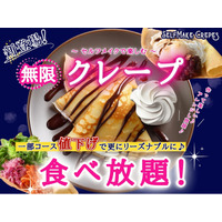 【新登場!!無限クレープ食べ放題!!】バラエティー豊かな食べ放題『ブッフェエクスブルー ららぽーと横浜』にてセルフメイクスイーツの『クレープ』が新登場!!更に一部コース値下げでリーズナブルに食べ放題を満喫!