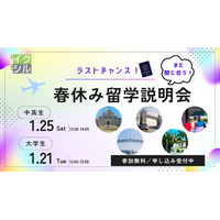 【中高生&大学生 春休み留学説明会】1月21日(火)・1月25日(土) オンライン開催!留学お申込みラストチャンスです!