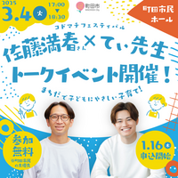 【東京都町田市】コドマチフェスティバル「佐藤満春さん×てぃ先生 トークイベント~まちだで子どもにやさしい子育て!~」を開催