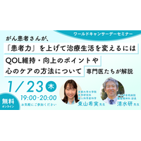 【無料:ワールドキャンサーデーセミナー】 がん患者さんが、「患者力」を上げて治療生活を変えるには QOL維持・向上のポイントや心のケア方法について専門医たちが解説