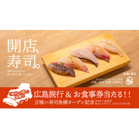 【立喰い寿司「魚椿」】広島での新店舗オープンを記念して、「寿司への想い」投稿で、広島旅行が当たるSNSキャンペーンを開催。