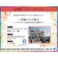 【岡山大学】高等先鋭研究院 文明動態学研究所 第41回RIDCマンスリー研究セミナー「<移動>の人類学-エチオピア人出稼ぎ女性の経験から-」〔1/15,水 オンライン開催〕