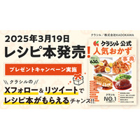 【4,400万人が選んだ決定版!】国内No.1のレシピ動画「クラシル」、公式レシピ本『クラシル公式 人気おかず事典』をKADOKAWAより発売 プレゼントキャンペーンを実施