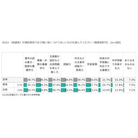 通信教育で子どもに身につけてほしいものは? 母親は「1位:読解力/学習習慣、3位:算数・計算の基礎学力」、父親よりも「読解力」を重視する結果に