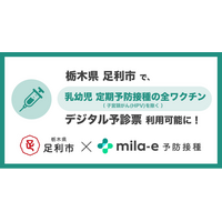 ミラボ、栃木県 足利市で導入する デジタル予診票サービス「mila-e 予防接種」において 乳幼児定期予防接種(A類疾病)全ワクチン(子宮頸がん(HPV)を除く)で利用可能に