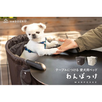 お出かけ先でもご自宅でも、愛犬と同じ目線で過ごす幸せを。『テーブルにつける愛犬用ベッド わんぽっけ』が新登場!