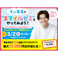 てぃ先生と“スマイルゼミ”をやってみよう!「子どもの可能性をぐんぐん伸ばす教育メソッド」3月2日(日)、YouTube ライブ配信セミナー開催
