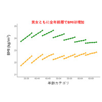 【慶應義塾】働く中高年世代(35歳~69歳)の全年齢でBMIが増加傾向に