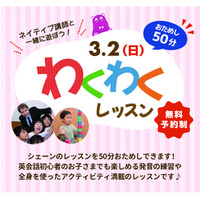 【シェーン英会話】3月2日開催!新年少~新中学2年生対象「無料おためしレッスン」