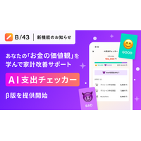 家計管理サービス「B/43」、ユーザーのお金の価値観を学習し家計改善を支援する「AI支出チェッカー」ベータ版を公開