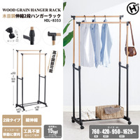 室内をお洒落に!!木目調伸縮2段ハンガーラック HDL-8353