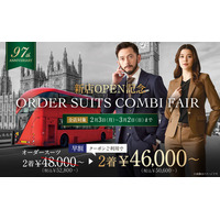 【新店OPEN記念】「グローバルスタイル」は新店OPENを記念し、オーダースーツが2着¥46,000~(税込¥50,600~)のお得なフェアを2月3日~3月2日まで全店舗で開催!