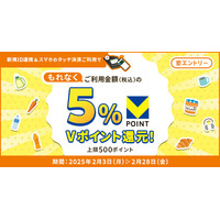 初めてのID連携&スマホのタッチ決済ご利用で、もれなくご利用金額(税込)の5%相当のVポイントをプレゼント!