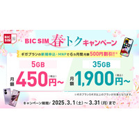 【BIC SIM】人気のSIMフリーiPhone、Androidが最大16,500円割引に!さらに月額料金を6ヵ月間500円割引し、新生活を全力応援!