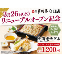 京阪百貨店に店舗を構えて39年目の大幅リニューアル!大海老天ざるそばを特別価格でご提供。 [画…