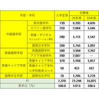関西外国語大学・短期大学部(大阪府枚方市)の2025年度入試で、大学の志願者が2万1248人と1966年の大学設…