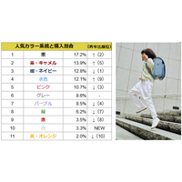 土屋鞄のランドセル、2026年ご入学用人気カラー速報を発表!バリエーション豊富な黒が1位、水色が大幅躍進しパステルカラーの新たな人気色に。